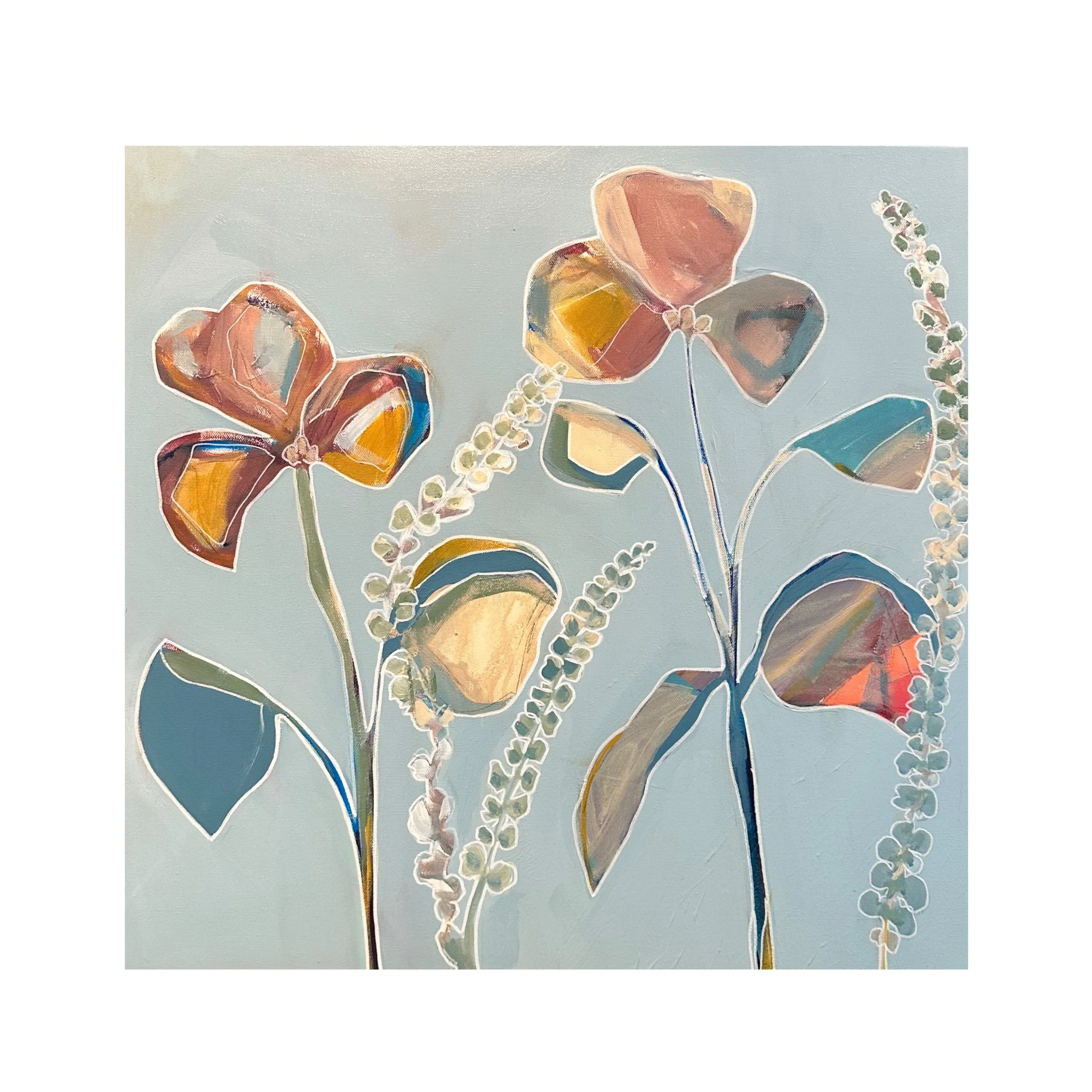 Image 1 of 1 Golden Isles Blooms $1,020.00 24 x 24 in. Acrylic, oil stick and graphite on canvas. Finished with a varnish and wired to hang. Price includes shipping. Purchase Added! 24 x 24 in. Acrylic, oil stick and graphite on canvas. Finished with a varnish and wired to hang. Price includes shipping.